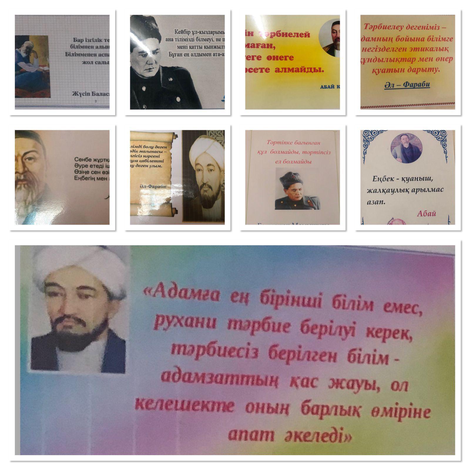 Қаратай Тұрысов атындағы №53 мектеп-гимназиясында оқу кабинеттерінің маңдайшасына ұлы адамдардың ғибратты сөздері ілінді. Әр сынып кабинеттер маңдайшасына шығыс пен қазақ халқының шешендерінің даналық сөздері таңдалып алынды.