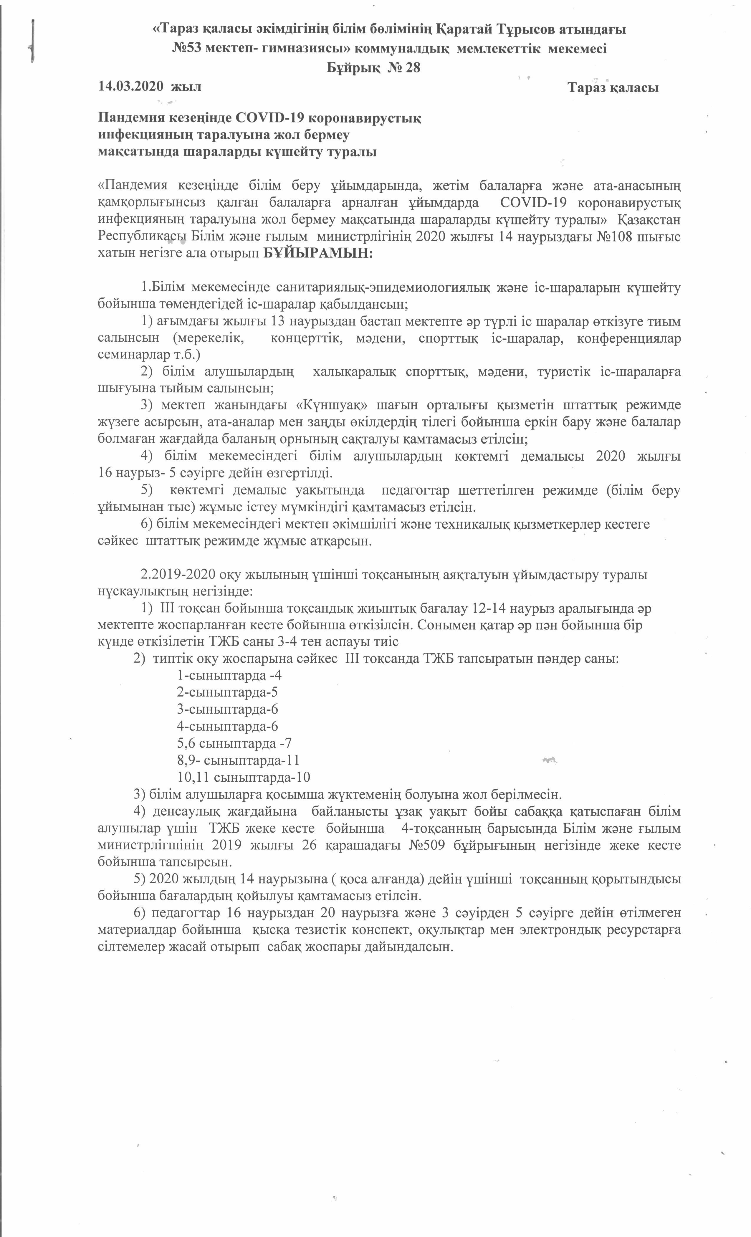 16 март 2020 0 1 2 3 4 5 Пандемия кезеңінде СОVID-19 коронавирустық инфекцияның таралуына жол бермеу мақсатында шараларды күшейту туралы