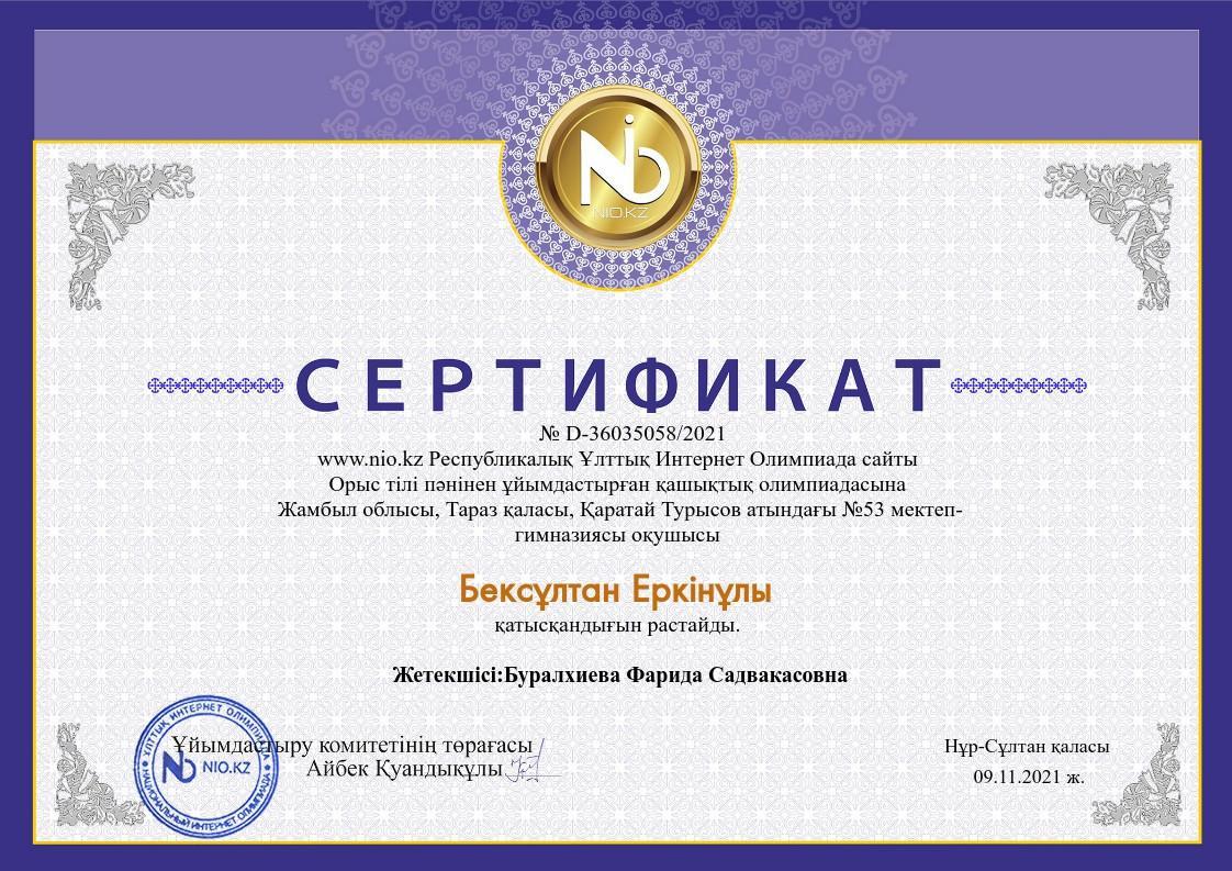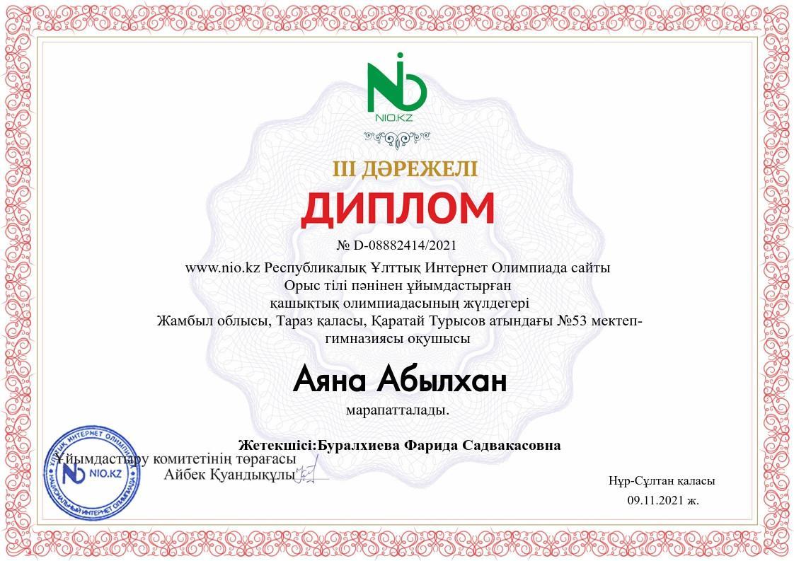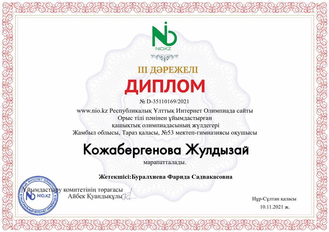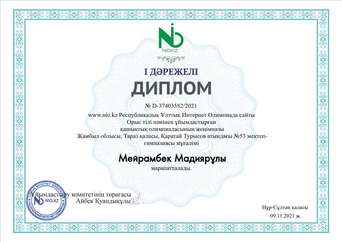 11 ноябрь 2021 0 1 2 3 4 5 Орыс тілі пәнінен ұйымдастырылған Республикалық ұлттық интернет олимпиадасынан жүлделі І,ІІ,ІІІ орын алған білім алушыларымызды құттықтаймыз!