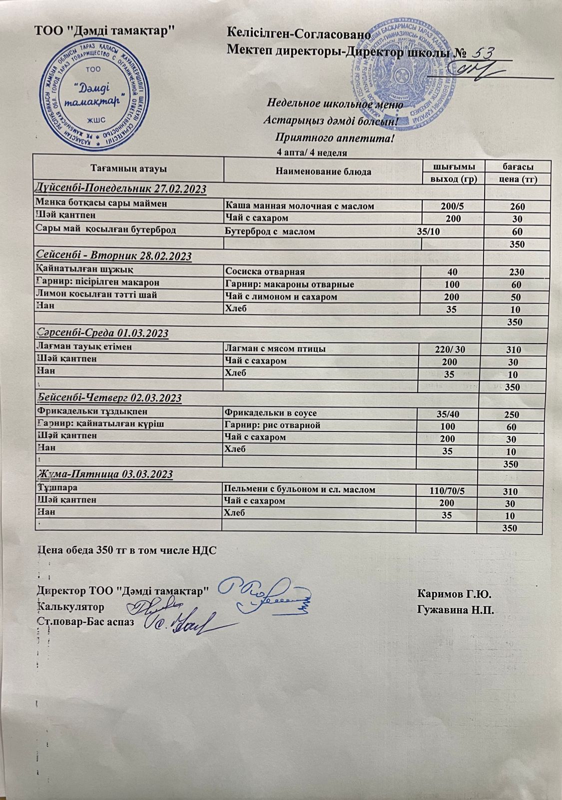 Апталық ас мәзірі 27.02-03.03.2023ж. » СШ №53