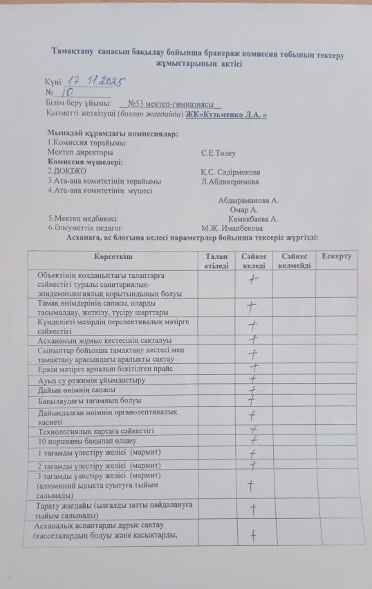 СШ №53 https://53-taraz.mektebi.kz/ ru СШ №53 DataLife Engine Тамақтану сапасын бақылау бойынша бракераж комиссия тобының тексеру жұмыстарының актісі https://53-taraz.mektebi.kz/pitanie/brokerazhdy-kommissija/1115-tamatanu-sapasyn-baylau-bojynsha-brakerazh-komissija-tobyny-tekseru-zhmystaryny-akts.html https://53-taraz.mektebi.kz/pitanie/brokerazhdy-kommissija/1115-tamatanu-sapasyn-baylau-bojynsha-brakerazh-komissija-tobyny-tekseru-zhmystaryny-akts.html ]]> admin Tue, 09 Dec 2025 10:30:51 +0600 Тамақтану сапасын бақылау бойынша бракераж комиссия тобының тексеру жұмыстарының актісі https://53-taraz.mektebi.kz/pitanie/brokerazhdy-kommissija/1113-tamatanu-sapasyn-baylau-bojynsha-brakerazh-komissija-tobyny-tekseru-zhmystaryny-akts.html https://53-taraz.mektebi.kz/pitanie/brokerazhdy-kommissija/1113-tamatanu-sapasyn-baylau-bojynsha-brakerazh-komissija-tobyny-tekseru-zhmystaryny-akts.html ]]> admin Mon, 17 Nov 2025 10:30:13 +0600 Тамақтану сапасын бақылау бойынша бракераж комиссия тобының тексеру жұмыстарының актісі https://53-taraz.mektebi.kz/pitanie/brokerazhdy-kommissija/1114-tamatanu-sapasyn-baylau-bojynsha-brakerazh-komissija-tobyny-tekseru-zhmystaryny-akts.html https://53-taraz.mektebi.kz/pitanie/brokerazhdy-kommissija/1114-tamatanu-sapasyn-baylau-bojynsha-brakerazh-komissija-tobyny-tekseru-zhmystaryny-akts.html ]]> admin Tue, 11 Nov 2025 10:30:51 +0600 Тамақтану сапасын бақылау бойынша бракераж комиссия тобының тексеру жұмыстарының актісі https://53-taraz.mektebi.kz/pitanie/brokerazhdy-kommissija/1112-tamatanu-sapasyn-baylau-bojynsha-brakerazh-komissija-tobyny-tekseru-zhmystaryny-akts.html https://53-taraz.mektebi.kz/pitanie/brokerazhdy-kommissija/1112-tamatanu-sapasyn-baylau-bojynsha-brakerazh-komissija-tobyny-tekseru-zhmystaryny-akts.html ]]> admin Wed, 05 Nov 2025 10:30:23 +0600 Тамақтану сапасын бақылау бойынша бракераж комиссия тобының тексеру жұмыстарының актісі https://53-taraz.mektebi.kz/pitanie/brokerazhdy-kommissija/1110-tamatanu-sapasyn-baylau-bojynsha-brakerazh-komissija-tobyny-tekseru-zhmystaryny-akts.html https://53-taraz.mektebi.kz/pitanie/brokerazhdy-kommissija/1110-tamatanu-sapasyn-baylau-bojynsha-brakerazh-komissija-tobyny-tekseru-zhmystaryny-akts.html ]]> admin Mon, 20 Oct 2025 10:09:15 +0600 20.10.2025 ж ас мәзірі https://53-taraz.mektebi.kz/pitanie/1111-20102025-zh-as-mzr.html https://53-taraz.mektebi.kz/pitanie/1111-20102025-zh-as-mzr.html ]]> ]]> admin Mon, 20 Oct 2025 10:00:03 +0600 Тамақтану сапасын бақылау бойынша бракераж комиссия тобының тексеру жұмыстарының актісі https://53-taraz.mektebi.kz/pitanie/brokerazhdy-kommissija/1107-tamatanu-sapasyn-baylau-bojynsha-brakerazh-komissija-tobyny-tekseru-zhmystaryny-akts.html https://53-taraz.mektebi.kz/pitanie/brokerazhdy-kommissija/1107-tamatanu-sapasyn-baylau-bojynsha-brakerazh-komissija-tobyny-tekseru-zhmystaryny-akts.html ]]> admin Wed, 15 Oct 2025 10:30:57 +0600 15.10.2025 ж ас мәзірі https://53-taraz.mektebi.kz/pitanie/1108-15102025-zh-as-mzr.html https://53-taraz.mektebi.kz/pitanie/1108-15102025-zh-as-mzr.html ]]> ]]> admin Wed, 15 Oct 2025 10:00:33 +0600 25.09.2025 ж ас мәзірі https://53-taraz.mektebi.kz/pitanie/1109-25092025-zh-as-mzr.html https://53-taraz.mektebi.kz/pitanie/1109-25092025-zh-as-mzr.html ]]> ]]> admin Thu, 25 Sep 2025 10:30:08 +0600 Салауатты тамақтану - салауатты ұрпақ кепілі https://53-taraz.mektebi.kz/pitanie/1105-salauatty-tamatanu-salauatty-rpa-kepl.html https://53-taraz.mektebi.kz/pitanie/1105-salauatty-tamatanu-salauatty-rpa-kepl.html